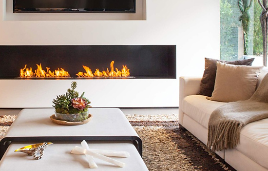 Лаконичный встраиваемый биокамин внушительных размеров.