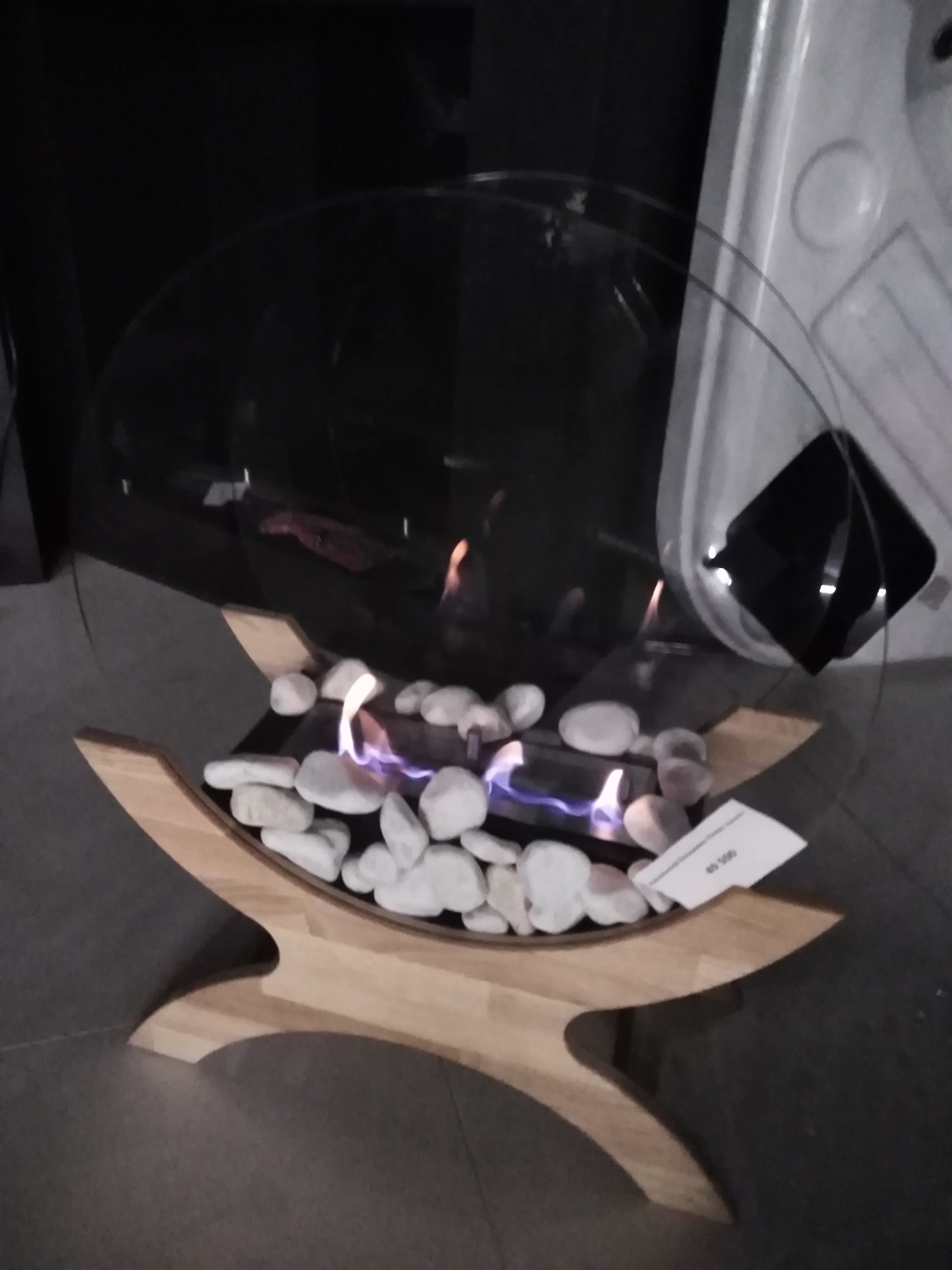 Отдельностоящая напольная модель. Состоит из основания изготовленного из дуба. Корпуса топливного блока. Два защитных термостойких стекла.