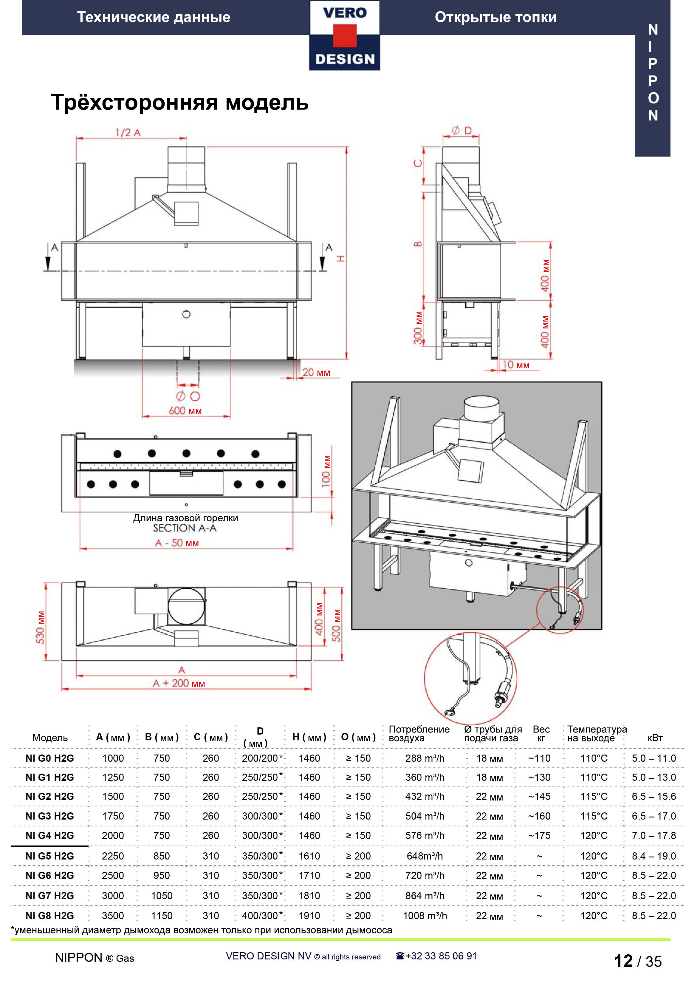 Газовый камин Vero Design Nippon NI G5 H2 G