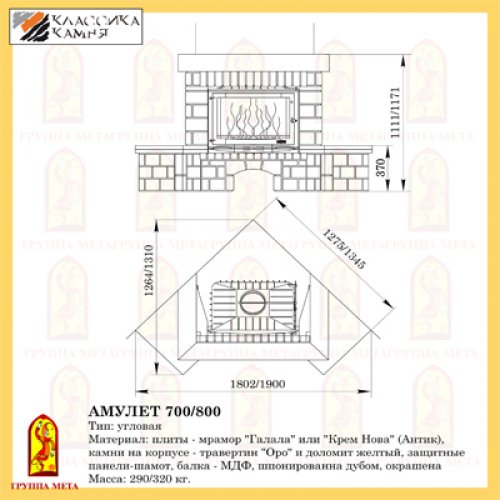 Каминная облицовка Мета Магия Огня Амулет 800