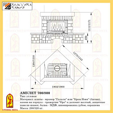 - Материал: мрамор «ГАЛАЛА» или «КРЕМА НОВА» (Антик), травертин «ОРО» и доломит жёлтый (скол), шамот жёлтый, балка - МДФ шпон дуба - окрашена.