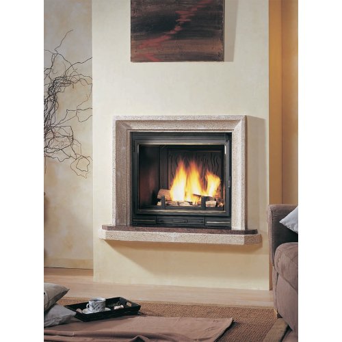 Модель камина, выполненная из камня Gard. Плита под топкой из гранита Royal Cachemire. Топка с прмой стеклянной дверцей, с функцией вторичного дожига.