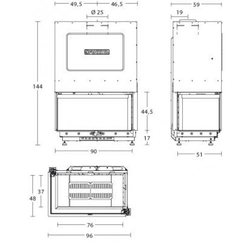 Проем: Дверца из эмалированной стали с керамическим стеклом, выдерживающимтемпературу до 750°, с самообдувом. Подъемная дверца, открывание на петлях для чистки.