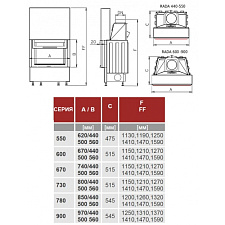 - Размер полена: 50 см (горизонтальная загрузка)- 3 модификации с размерами 63 x 53, 70 x 60 и 70 x 69