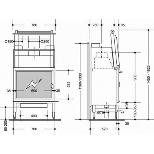 • Топки с подъемной дверцей снабжены противодымной камерой, установленной на заводе