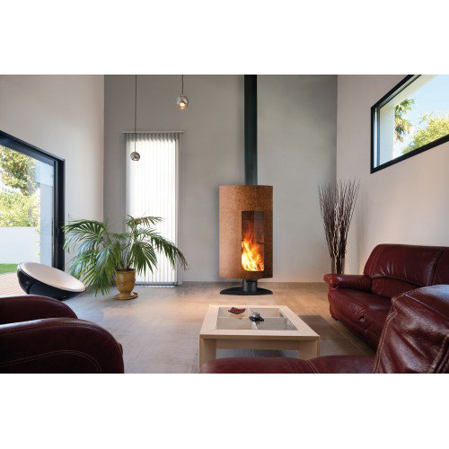 Очаг состоит из трех стен: внешней, средней и внутренней. Конвекционный воздух свободно циркулирует между внешней и средней стенками, таким образом позволяя отапливать помещение, снижая температуру внешней стенки для удобного использования и безопасности. Воздух для горения поступает из нижней части очага. Воздух постоянно обдувает стеклянную панель, благодаря чему стекло остается чистым.