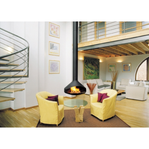 - Свободно стоящий камин прерывистого горения, с открытой топкой