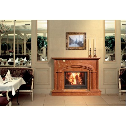 Портал Барселона представлен на фото в камне Rojo Alicante (Испания) - это полированный мрамор высочайшего качества обработки, который будет гармонично смотреться в светлых интерьерах. Чертеж Sunhill Barcelona