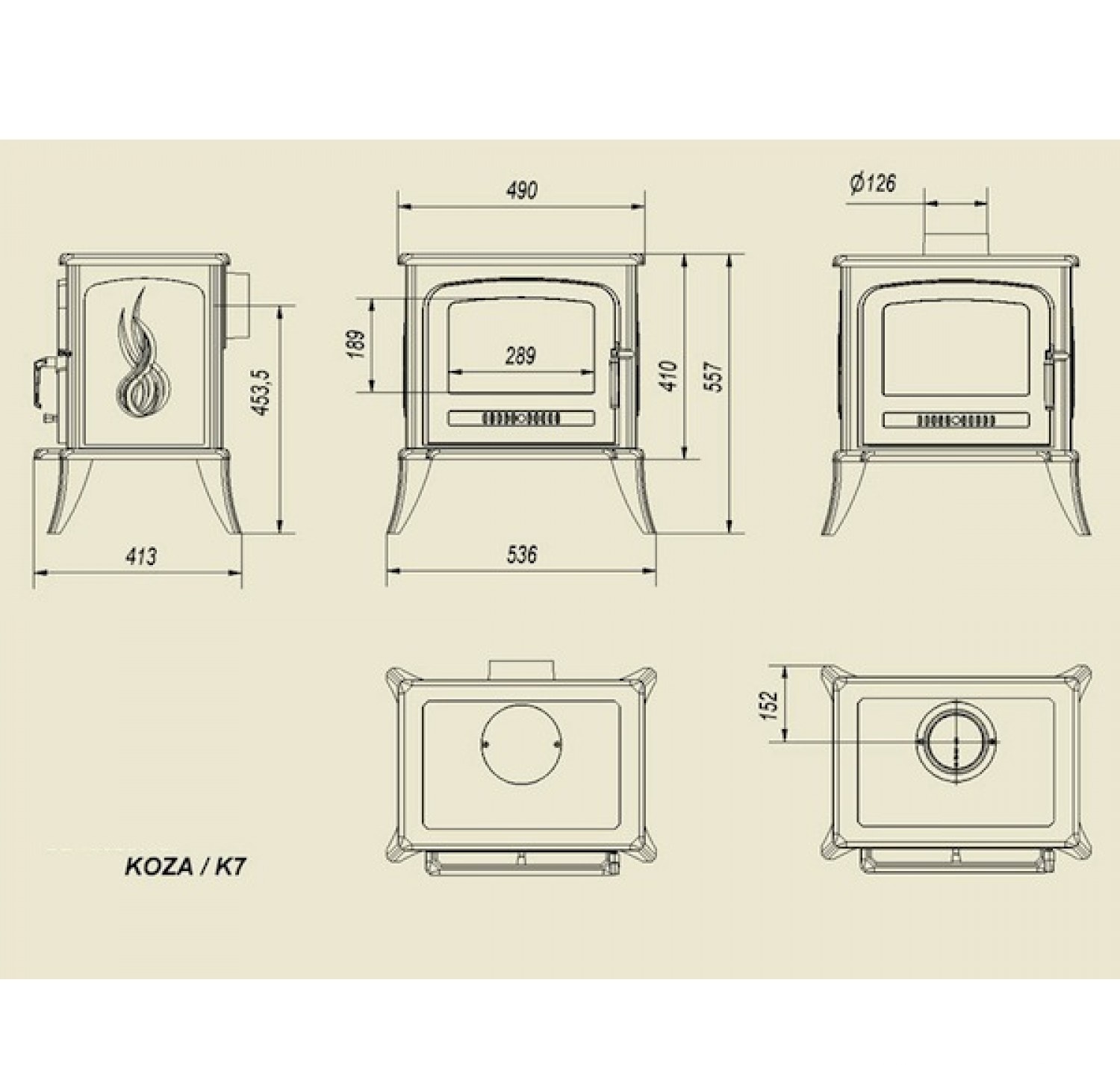 Печь-камин Koza/K7 — это небольшая серая чугунная отопительная печь камин бюджетного варианта для дачи. Она может быть использована как дополнительный источник тепла. В топочной камере расположен вынимаетый зольник. С помощью рычага можно регулировать подачу воздуха на горение. В качестве топлива для этой печи можно использовать не только древесину, но и угольные брикеты.