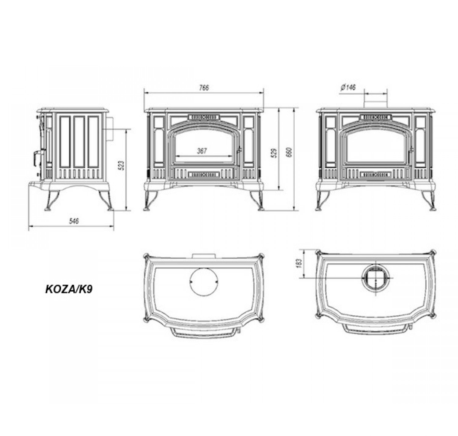 Печь-камин (буржуйка) «Koza K9» — чугунная
