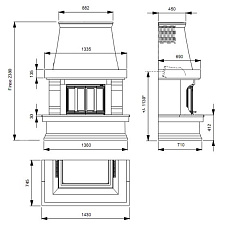 Притопочная зона облицована серым природным мрамором. Топка стальная, футерованная легким огнеупорным кирпичом "Thermotte ™ ". Стеклокерамическое окно выдерживает высокотемпературный нагрев (800 градусов Цельсия).