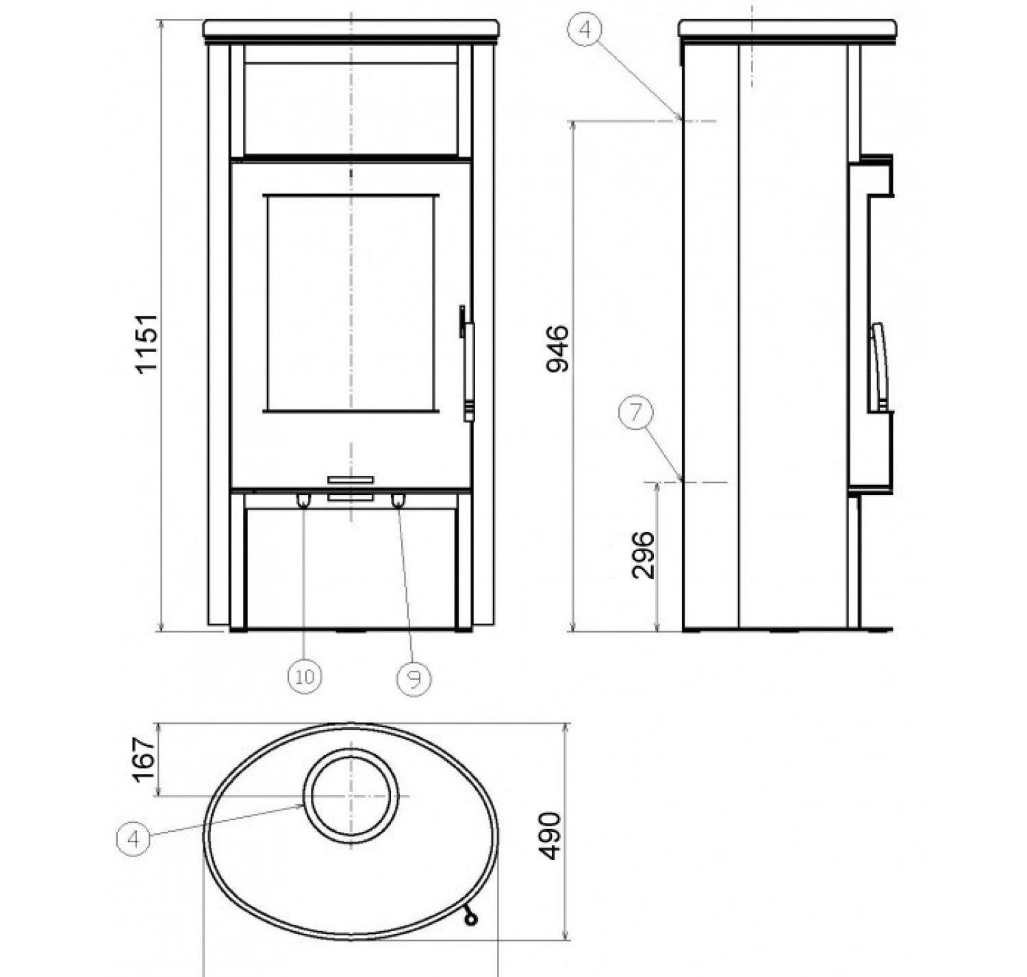 Корпус печи покрыт специальной краской, выдерживающей высокие температурные нагрузки. Корпус данной модели имеет цилиндрическую форму, поэтому ее можно поставит не только возле стены, но и в углу помещения. Island 5 — это хороший выбор для владельцев небольшого дома.