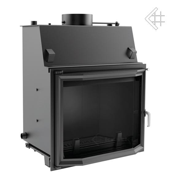 Массивная топка с теплообменником и призматическим стеклом. Корпус топки изготовлен из 4 мм котловой стали, что обеспечивает возможность работы при высоких температурах. Стекло дверцы выдерживает температуру до 800оС. С помощью шиберной заслонки регулируется тяга воздуха.