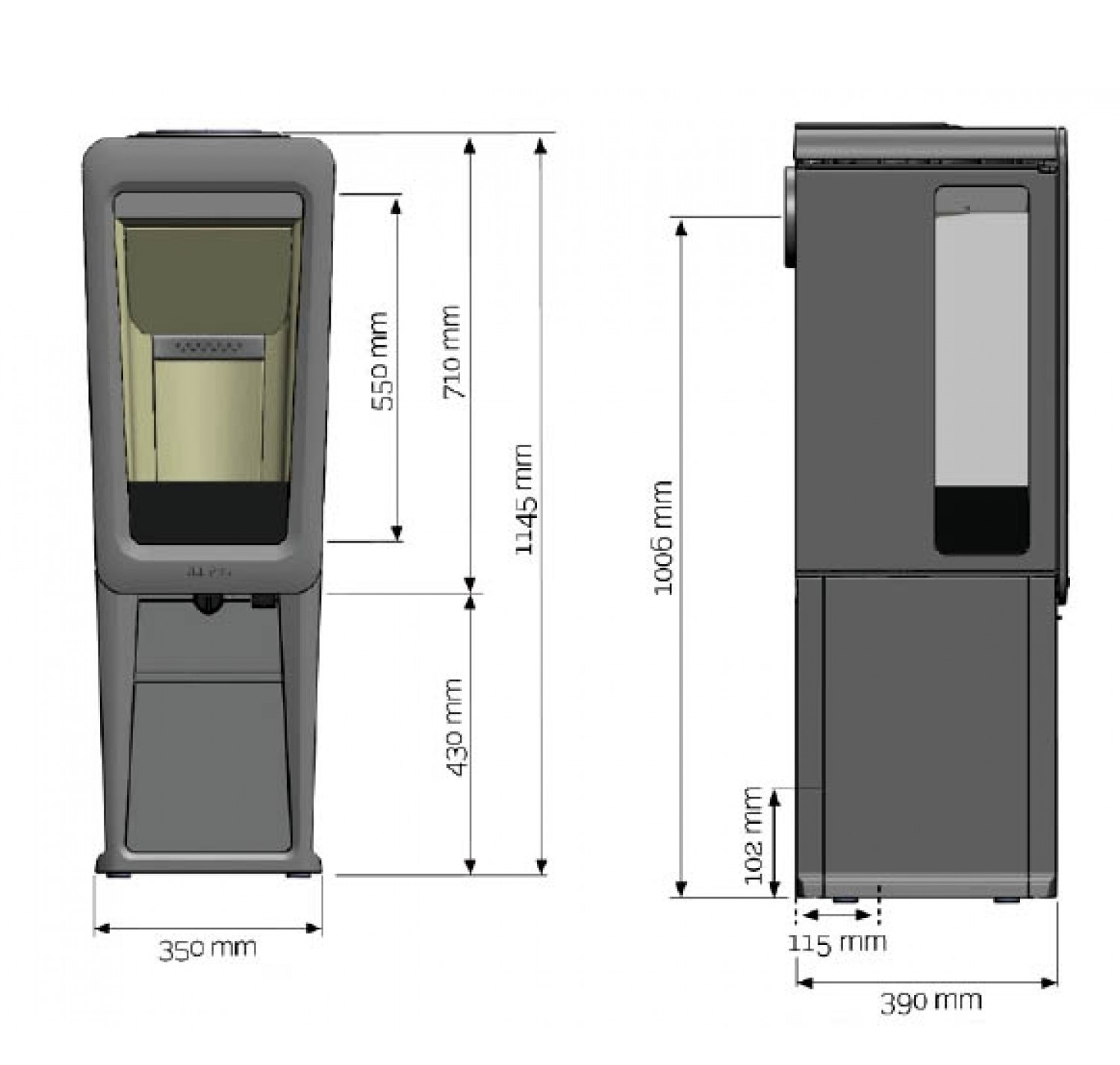 Печь-камин K-816 (Keddy) из чугуна с высокой ножкой в сером цвете с 2-мя боковыми стеклами.