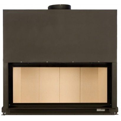 Каминная топка с прямым стеклом. Топочная камера футерована шамотом. Подъёмный механизм двери (система Easy-Lift). Ширина дверки 1210 мм. Высота дверки 538 мм. Возможно подключение воздуха извне.