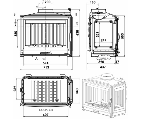 Полностью чугунная топка с боковым открытием двери.