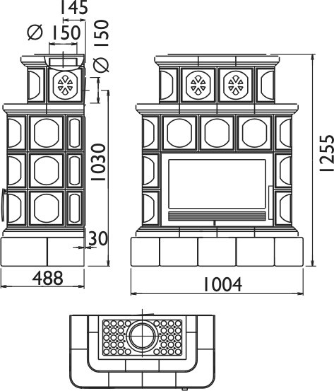 - Диаметр дымохода, (мм) 150