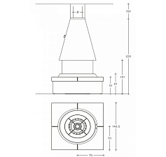Основание сделано из панелей толстой майолики и окрашенной стали. Майолика ручной отделки, может быть заказана в вашем любимом цвете, выбранным из палитры Piazzetta. Очаг камина сделан из жаропрочного материала, кожух и основание из окрашенной стали. Камин оснащен эксклюзивным электронным механизмом подъема/спуска переднего круглого стекла. Камин совместим с топками M360 T (цилиндрический или конический кожух).