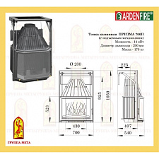 - внутренний обклад из литьевого шамота аккумулирующего тепло золотисто-песочного цвета, нечувствительного к ударам;