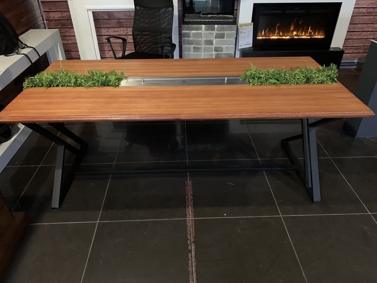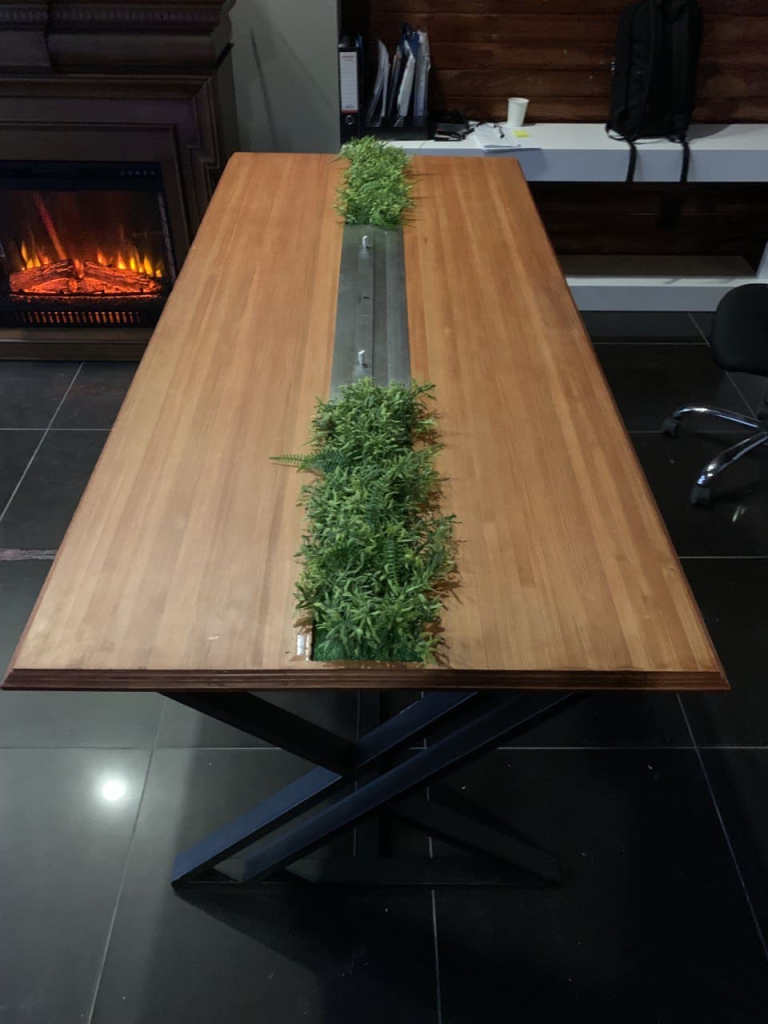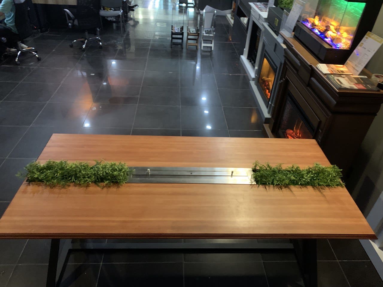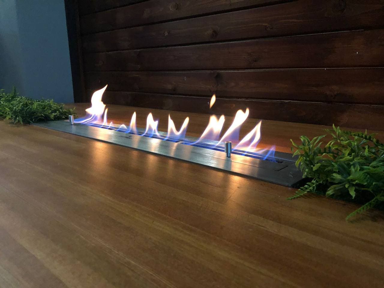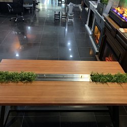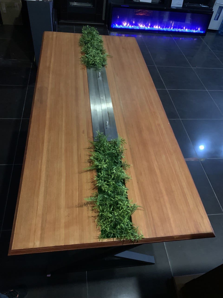 Установлен биокамин Firezo Tavolo bello в деревянную столешницу. Также тут не стандартный топливный блок длина-820мм, ширина-150мм, а линия огня составляет 730мм.